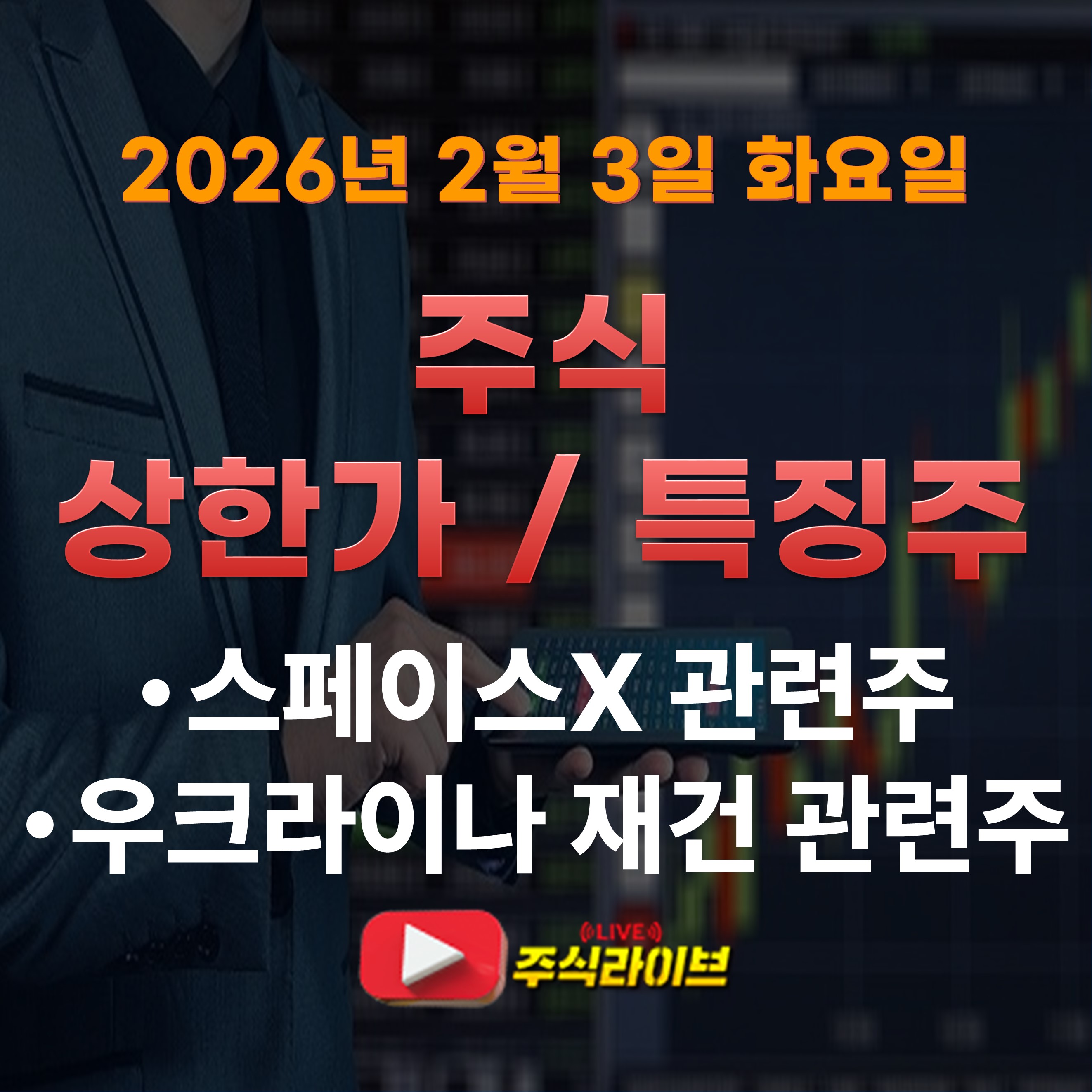 2026년 2월 3일 화요일 상한가/특징주 [스페이스X 관련주, 우크라이나 재건 관련주]