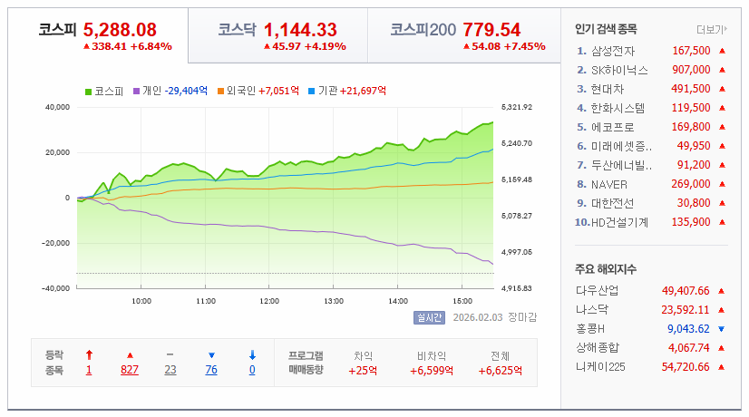 2026년 2월 3일 화요일 상한가/특징주 정리